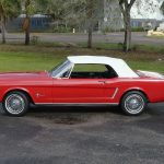 This 1965 Ford Mustang Convertible is a true classic, finished in the eye-catching Rangoon Red exterior that exudes both elegance and boldness. The vibrant red paint, coupled with chrome accents, highlights the Mustang’s iconic lines, making it a standout wherever it goes. The sleek, sporty design of this convertible perfectly embodies the spirit of 1960s American muscle.