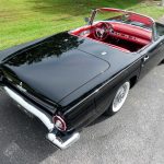 This 1957 Ford Thunderbird Convertible is a stunning example of mid-century American luxury and performance, finished in Raven Black, a color that radiates sophistication and timeless style. The sleek, glossy black exterior is the perfect complement to the Thunderbird’s refined lines, chrome detailing, and iconic front grille, making it a standout on any road.