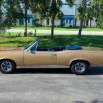 This 1967 Pontiac GTO Convertible is a legendary example of American muscle, finished in the striking Signet Gold exterior that exudes both sophistication and raw power. The gold paint gleams with a timeless quality, enhanced by the chrome accents that highlight the car’s aggressive lines and iconic GTO presence. With its unmistakable styling, this GTO is a true standout on the road.
