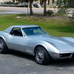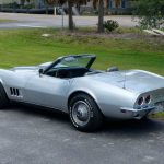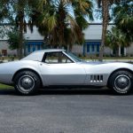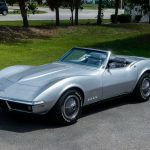 This 1968 Chevrolet Corvette Convertible is a stunning representation of American automotive excellence, finished in the sleek Silverstone Silver exterior that gives it a sophisticated, modern look with a touch of timeless elegance. The bright silver hue highlights the Corvette’s aerodynamic shape, emphasizing its performance-oriented design while exuding an air of refined style. Chrome accents and bold lines make this Corvette an instant classic on the road.